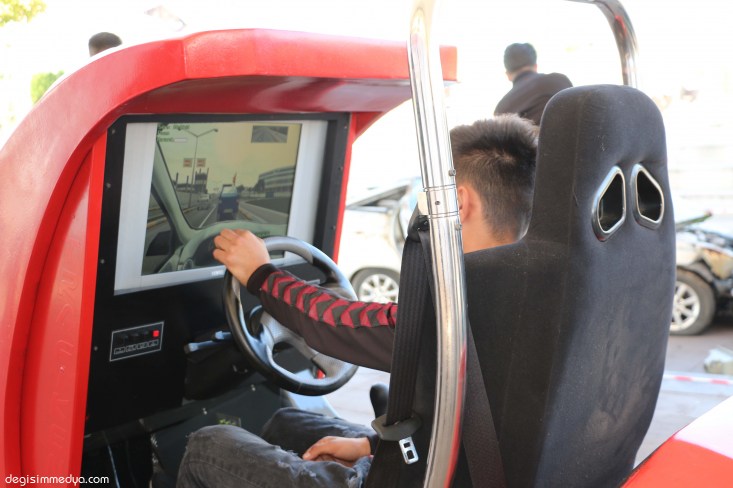 Öğrencilerin yüksek hızın neden olduğu kazaları anlatabilmek için getirdiği smilasyon aracı da hem vatandaşlar hem de diğer öğrenciler tarafından denendi. Simülasyon aracını kullanan ve aşırı hız yaparak kavşağı dönemeyen İlhan Çetin isimli vatandaş "Gaza bastık, biraz fazla galiba. Önümüze de kavşak çıkınca kaza yaptık. Yapacak bir şey yok. Şu anda da hastanede tedavi görüyorum" dedi. Simülasyon aracına binerek aşırı hız yapan ve önünde ki araca çarparak kaza yapan öğrencilerden Ali Aktaş' da aşırı hızın iyi bir şey olmadığını ve her sürücünün mutlaka araçlarının bakımlarını zamanında yaptırması ve trafik kurallarına uyması gerektiğini söyledi.