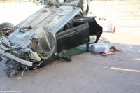 Kaza yapan araçların yanında hangi kurallara uymadığına ilişkin tabelalar da yerleştirildi.