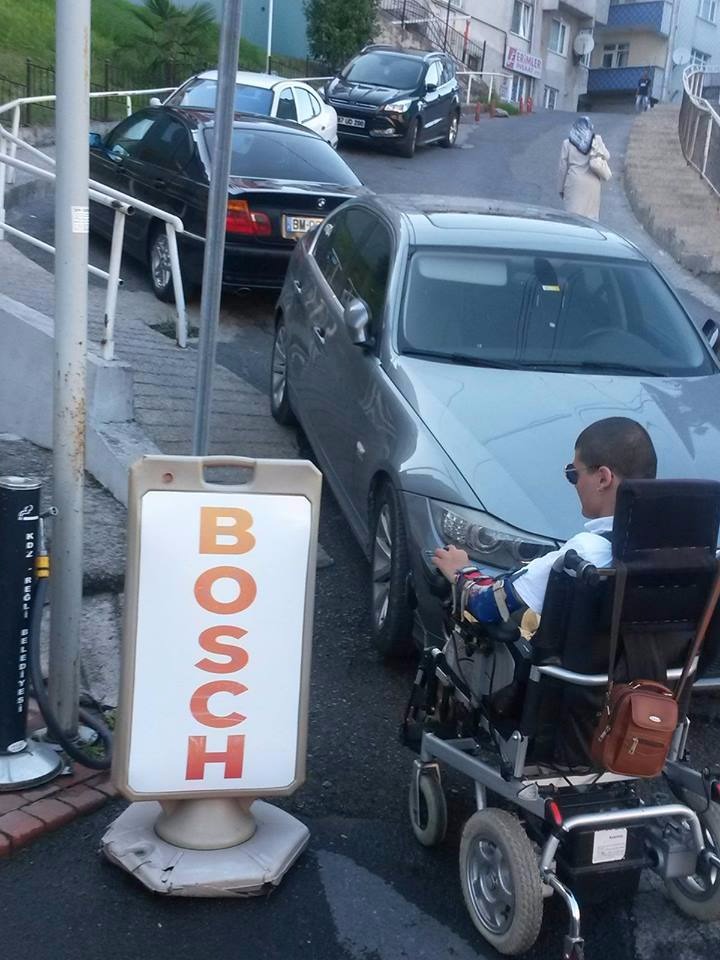 İlçeye bağlı Sarıkorkmaz mahallesi Eski itfaiye caddesi üzerinde engelli geçişlerinin önüne bırakılan araçlar engelli vatandaşların tepkisini çekti. Engelli rampasının önüne çekilen araçlar nedeniyle evine inip çıkmakta zorluk yaşayan Yasin Çiçek, araç sürücülerine seslenerek daha duyarlı olmaları konusunda uyarıda bulundu. Çiçek "Bugün burada engelli rampasına çekilen araçlardan sorun yaşıyoruz. Sadece burası için değil. Sürücülerden engelliler için yapılan her türlü alan için daha duyarlı olmalarını istiyoruz" dedi.