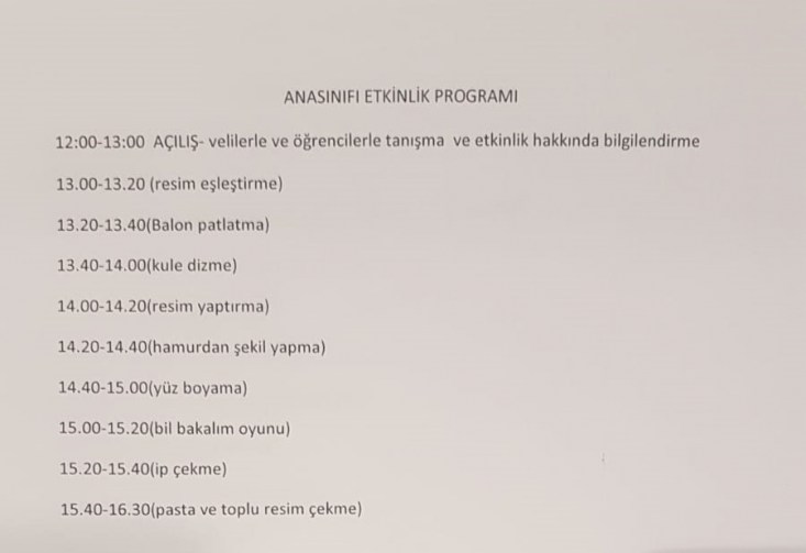 İŞTE O ETKİNLİK PROGRAMI;