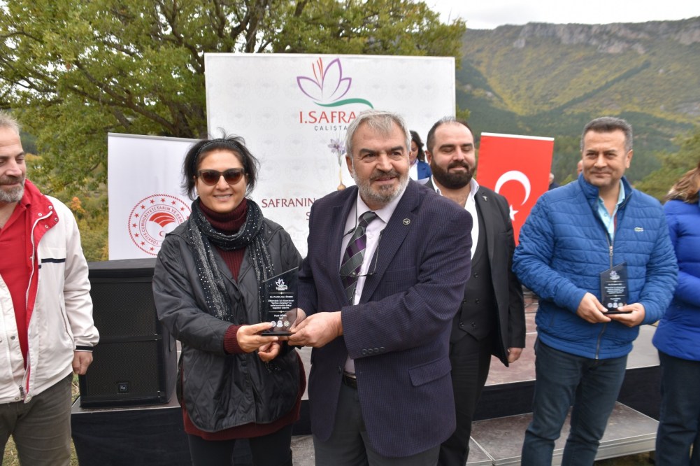 Safran bölgemizin en önemli değerlerinden bir tanesidir. Zirai ürün olarak yıllardır bölgemize yetiştirilen ve faydalanılan ama son yıllarda tamamen turizm odaklı bir ürün haline geldi. Hem dikimine ilgi gösteriliyor hem de şu anlarda hasat kısmında oldukça fazla misafir ağırladığımız bir ürün haline geldi. Burada çok farklı bir uygulama yapıldı. Özellikle ülkemizin Güney ve Batı kısmında oldukça popüler lavanta üretim merkezleri yer alıyor. Bizde bu iki güzel ürünü bir arada kullanarak çok hoş bir bahçe yaratmak istedik. Bu proje sadece tarım müdürlüğümüzün değil Safranbolu Ticaret ve Sanayi Odamızın da ortaklığında ve maddi katkıları ile gerçekleştirilen bir projedir. Kurulan Safranova şirketi artık Safranbolu Ticaret ve Sanayi Odamıza emanet. Bölgemizde gerçekten safranın ve lavantanın yerini artırmak adına Ticaret ve Sanayi Odamız bu işin ortasında yer aldı. 2 milyon 100 bin liralık desteğin burada nelere dönüştüğünü görebiliyoruz. Az ilerimizde Cam terasımız mevcut ve 500 bin insanın ziyaret ettiği bir nokta burası ile birlikte bu rakamın çok daha artacağına inanıyoruz. Bu projenin Safranbolu ve Karabük Tarımına öncülük edecektir. Orman Müdürlüğümüzün Aromatik Bitkiler Şehri adında bir çalışması var. Bartın yolu üzerinde çok önemli bir bölgede. Sadece safran ve lavanta yok, bir çok aromatik bitki yer alıyor. Orası da bizim için başka bir ziyaret bölgesi olacak” şeklinde konuştu.