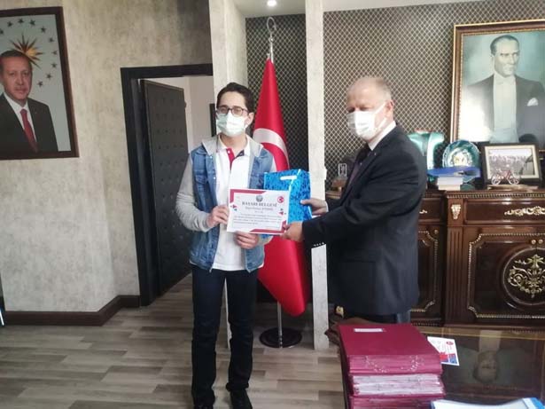 Zonguldak’ın Ereğli İlçe Kaymakamı İsmail Çorumluoğlu, Gençlik ve Spor Bakanlığı Gençlik Hizmetleri Genel Müdürlüğü’nce düzenlenen öykü yarışmasında 1. olan öğrenci Muhammet Furkan Davulcu ile öğretmeni ve ailesini makamında kabul ederek, tebrik etti.