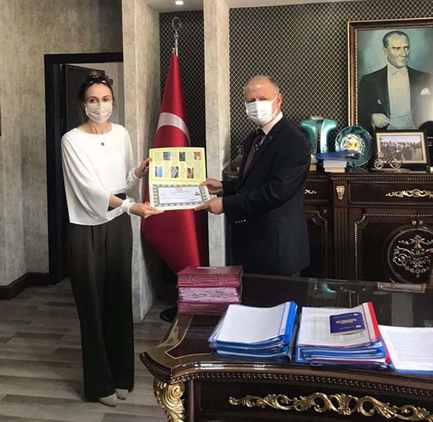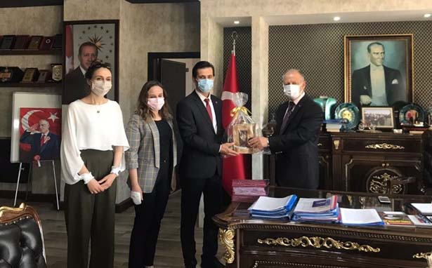Öğretmenler, İsmail Çorumluoğlu’na yaptıkları ziyarette öğrencilerinin yapmış olduğu avizeyi hediye ettiler. Kaymakam Çorumluoğlu, yönetici ve öğretmenleri tebrik ederek, başarılarının devamı dileklerinde bulundu.