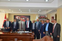 Zonguldak ve ilçelerindeki Muhtarlar Derneği başkanları Alaplı Belediye Başkanı Nuri Tekin'e nezaket ziyaretinde bulundular.