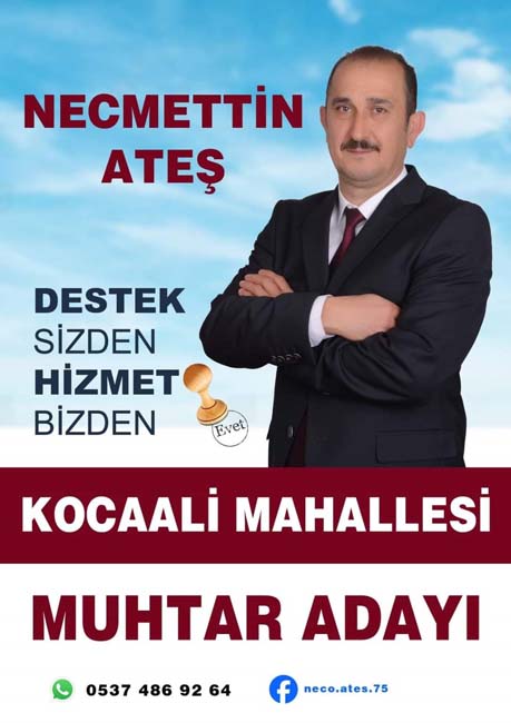 Karadeniz Ereğli Kocaali Mahallesi Muhtar Adayı Necmettin Ateş, “Birlikte daha güzel bir geleceğe yürümek için bana destek vermenizi diliyorum”