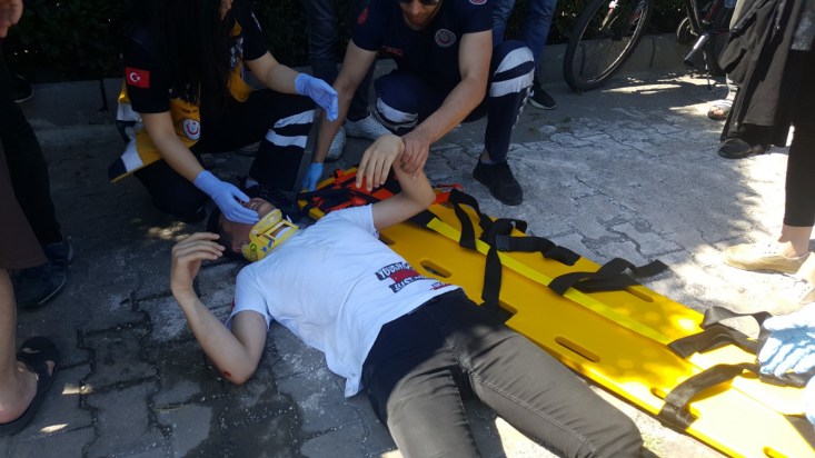 Zonguldak'ın Alaplı ilçesinden Ereğli'ye bisikletleri ile gezmeye gelen kafilede yer alan M.Ö (15) bir anlık dalgınlıkla kaldırıma çarptı. Kazada yaralanan genç, sağlık ekiplerinin ilk müdahalesinin ardından Özel Echomar Hastanesine kaldırılarak tedavi altına alındı.