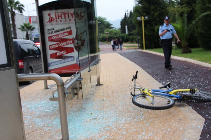 Karadeniz Ereğli'de bisikletin direksiyon hakimiyetini kaybeden genç, otobüs durağına çarparak camı patlattı. Vücudunda kesikler oluşan genç ambulansla Karadeniz Ereğli Devlet Hastanesi'ne kaldırıldı.