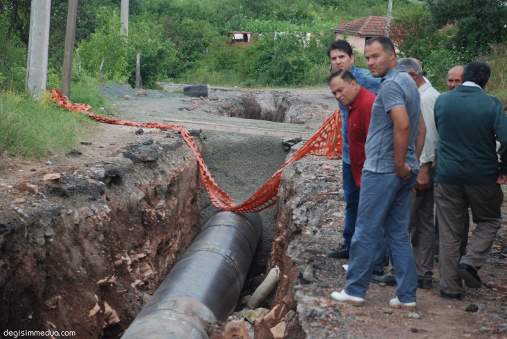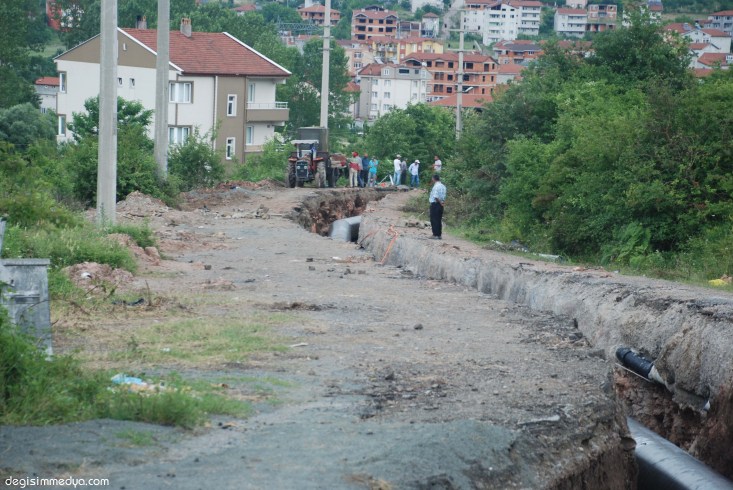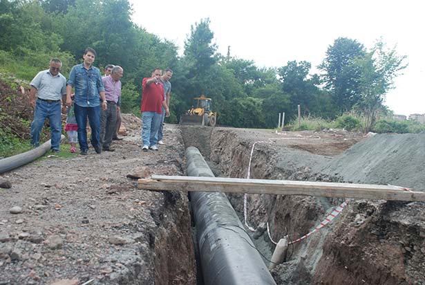 boruların döşenerek işin bitirildiği bölümlerde, yolun üzerlerinin