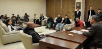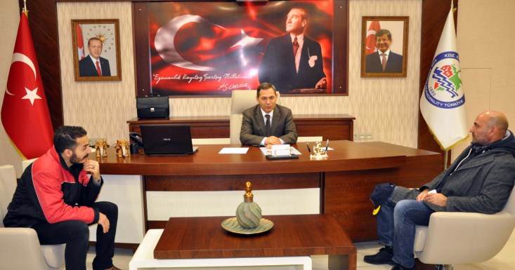 Coşkun Yeltekin ve oyuncular, Karadeniz Ereğli Belediye Başkanı Hüseyin Uysal'ı