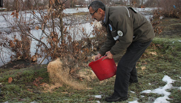 Akçakoca'da aç kalan martıları vatandaşlar simitle besliyor.