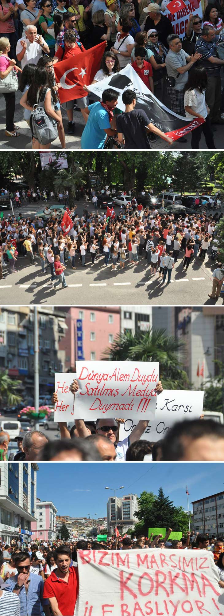 Taksim Gezi Alanına yapılacak AVM inşaatına 'dur' demek için eylem yapan guruplara destek olmak için Kdz. Ereğli'de eylem başladı. İş Bankası önünde toplanan yaklaşık 1000 kişi, Ak Parti Hükümeti aleyhine slogan atıyor. Polis Geniş güvenlik önlemi alırken, eyleme katılım daha da büyüyor.