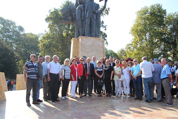 Atatürk Anıtı'na gelerek çelenk sundular.