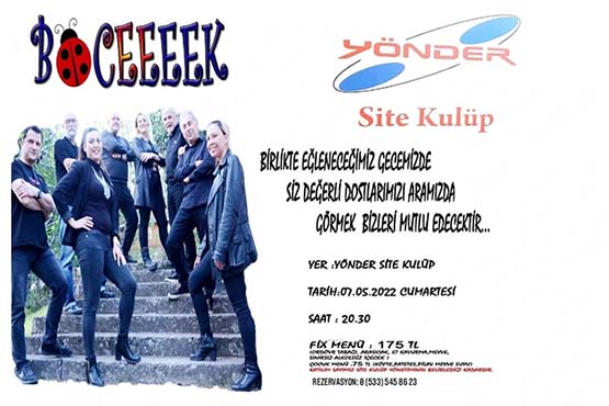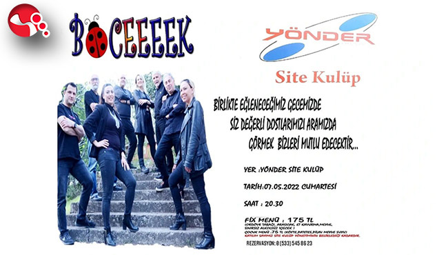 Karadeniz Ereğli'nin sevilen müzik grubu BÖCEEEEK, 7 Mayıs Cumartesi günü, Yönder Site Kulüp'te sahne alacak...
