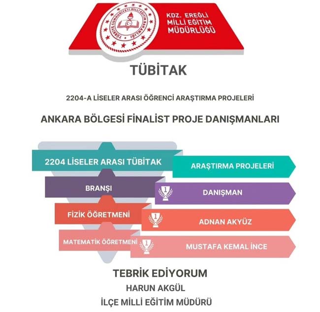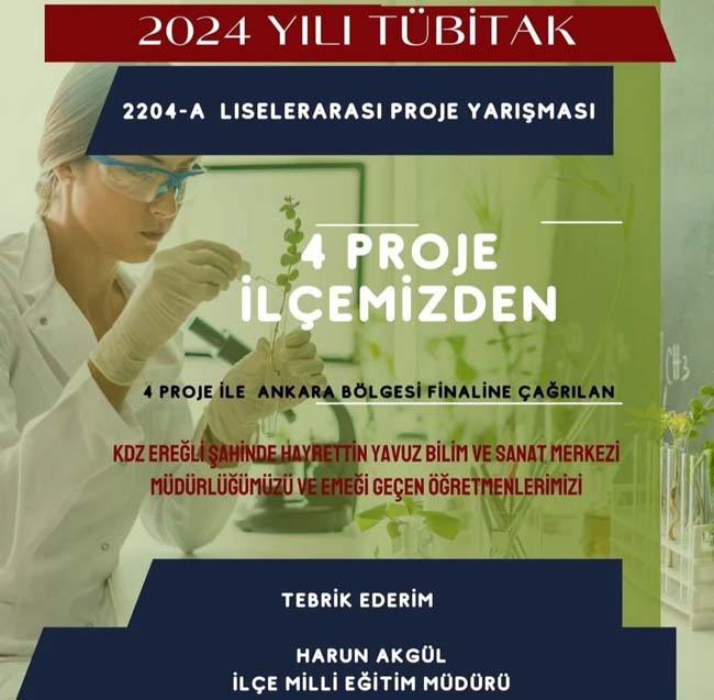 Akgül, sosyal hesaplarındaki görsel paylaşımında, “2024 Yılı TÜBİTAK 2204-A Liselerarası Proje Yarışmasında 4 proje ile Ankara’ya çağırılan Kdz. Ereğli Şahinde-Hayrettin Yavuz Bilim ve Sanat Merkezi Müdürlüğümüz, öğrencilerimiz ve emeği geçen öğretmenlerimizi tebrik ediyorum” ifadelerine yer verdi.