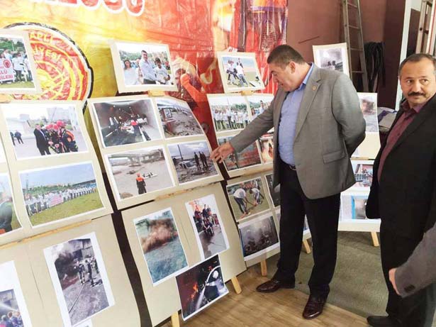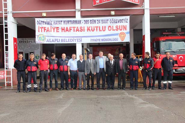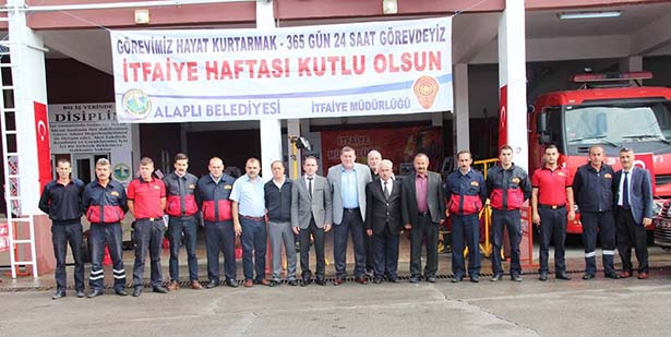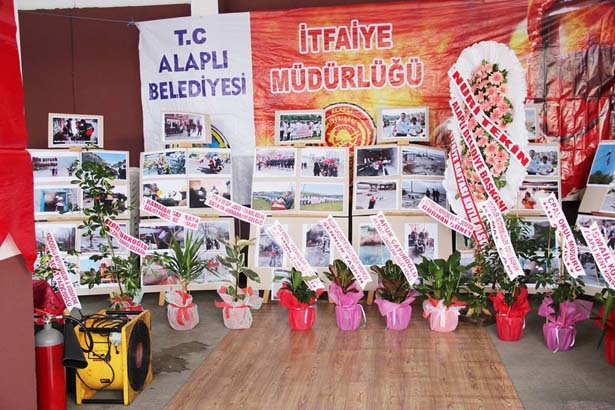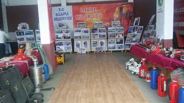 Alaplı İtfaiye Müdürlüğün de açılan sergiyi Alaplı Belediye Başkanı Nuri Tekin gezerek itfaiye personeliyle birlikte pasta kesti. Tek tek itfaiye personelini kutlayan Başkan Tekin daha sonra hatıra fotoğrafı çektirdi. Alaplı Belediye Başkanı Nuri TEKİN burada yaptığı açıklama da; "Halkımızın can ve mal güvenliğini korumak amacıyla büyük bir özveriyle görevlerini ifa eden itfaiye teşkilatımız, bu görevlerini yerine getirirken hayatlarını hiçe sayarak, canla başla çalışmaktadırlar. İtfaiyecilik, birçok riski beraberinde taşıyan zor ve meşakkatli bir meslektir. Tüm bu risklere rağmen kuruluş amacını karşılıksız yardım anlayışından alan itfaiye çalışanlarımız tüm canlılara yardımcı olabilmek için büyük bir özveri ve gayretle, her türlü felaket ve acil durumlarda kendi hayatlarını tehlikeye atarak, zor şartlarda, mesai kavramı gözetmeksizin görevlerini yerine getirmektedir. Bu vesile ile yangın ve doğal afetle mücadelede yaşamını yitiren şehit itfaiyecilerimize Allah'tan rahmet dilerken, Belediyemiz İtfaiye Teşkilatı mensuplarımızın ve ülkemizin her köşesinde, her zaman görevinin başında olan itfaiyeci kardeşlerimizin İtfaiye Haftasını en içten dileklerimle kutluyor, başarılı çalışmalarının devamını diliyorum."dedi. İtfaiye Müdürü Sinan Taşkın yaptığı açıklamada, İtfaiye Haftası kapsamında itfaiye müdürlüğü binasında açılan resim sergisi ve tanıtım standımızda tüm ekipmanlarımız sergilenmektedir. Tüm halkımız davetlidir. Alaplı itfaiyesi olarak bölgemizde 52 köy,1 belde, 10 fabrika olmak üzere toplam 60.000 kişilik nüfusa hitap etmekteyiz. Kdz.Ereğli'nin bazı köyleri ve plajlar ve Merve altı bölgesi Akçakoca'nın bazı bölgelerinin bizlere yakın olması nedeniyle ihbarlar bize düşmektedir. Bu sebeple müdahaleye geç kalınmaması için bu bölgelerdeki ilk müdahaleyi teşkilatımız yapmaktadır. İtfaiye haftası kutlamaları kapsamında itfaiye müdürlüğü binamızda bölgemizde bir ilk olan resim sergisi ve ayrıca itfaiye ekipmanları tanıtım standı tüm halkımızın ziyaretine açılmıştır. Tüm halkımızı sergimize ve standımıza bekliyoruz."dedi.