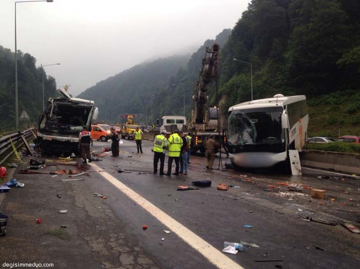 Bolu'da TEM otoyolunda sabaha karşı Metro Turizm'e ait iki otobüsün karıştığı trafik kazasında en az 6 kişi öldü, 40 kişi de yaralandı. Kaza nedeniyle TEM'in İstanbul yönü ulaşıma kapandı. Kaynaşlı'dan itibaren de Ankara yönünde trafik yoğunluğu görüldü.