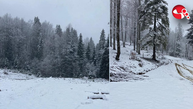 Zonguldak’ın Alaplı ilçesi Gümeli Yaylasına yılın ilk kardı yağdı.