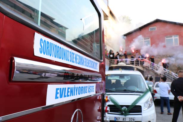 Zonguldak’ta dolmuş şoförlüğü yapan Murat Kulakçı ile yine ailesi dolmuşçu olan Demet Yüksel dünya evine girdi. Damat kullandığı minibüsü gelin arabası yaparak konvoyla gelin almaya gitti. Dolmuş minibüsünü gelin arabası gibi süsleyen damat Murat Kulakçı, arabanın arkasına “Soruyordunuz ne zaman evleneceksiniz diye, evleniyoruz işte” yazdı. Gelini almaya giden damat tarafını gelin tarafı meşalelerle karşıladı. Alkışlar eşliğinde gelin aracına binen gelin ve damat düğün salonunun yolunu tuttu.