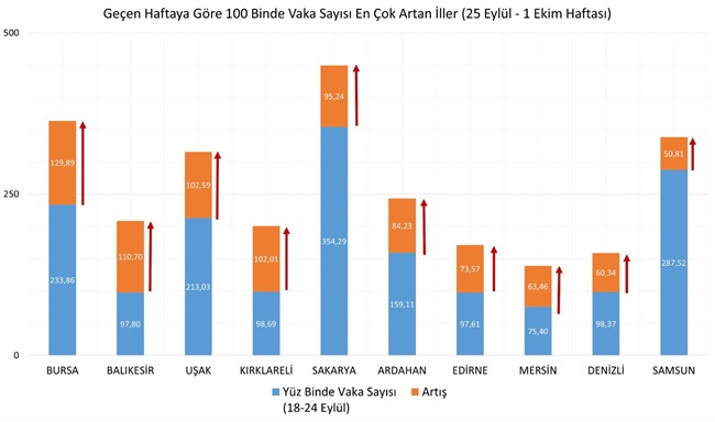 Sağlık Bakanı Fahrettin Koca, 25 Eylül-1 Ekim arasında, 100 bin kişi içinde bir haftalık toplam yeni Covid-19 vaka sayısını gösteren İnsidans haritasını yayımladı. Zonguldak’ta bir önceki hafta açıklanan haritada 529,60 olarak açıklanan vaka sayısı artarak 557,17’ye yükseldi. Önceki hafta 167,97 artarak 529,60’a yükselerek ülke genelindeki en yüksek vaka sayısına sahip olan Zonguldak, bu haftada da 557,17’e yükselerek en yüksek vaka sayısına sahip il oldu.