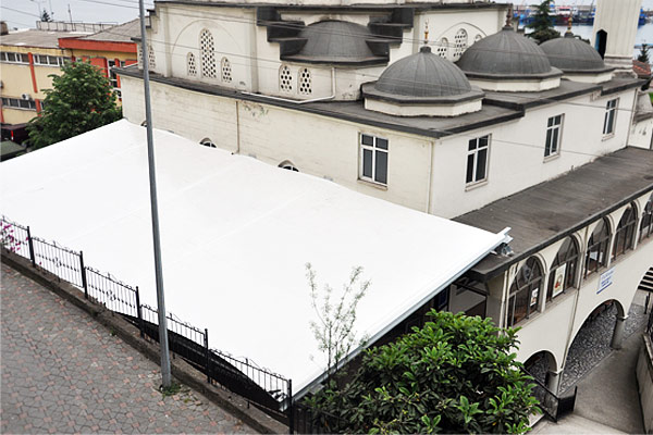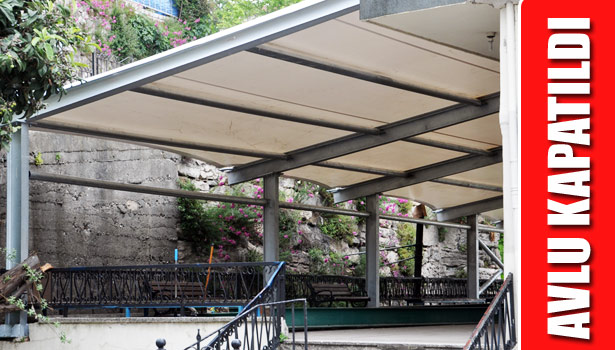 avlusu yağmurdan güneşten korunması hedeflenmiş ve kapalı alan büyültülmek