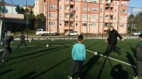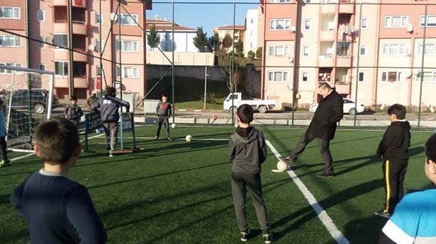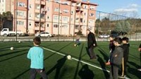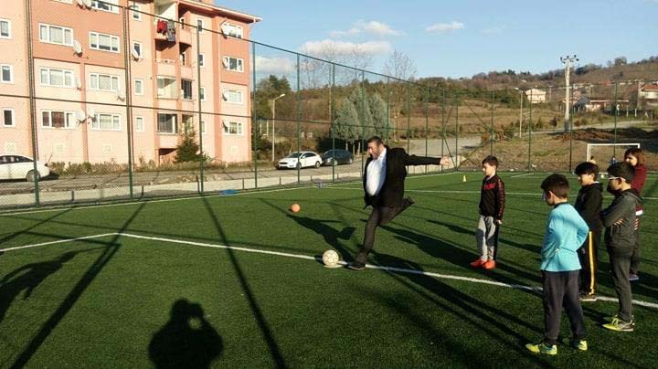 Çocuklar ile sohbet ederek futbol oynadı. Mahalle sakinleri yapılan