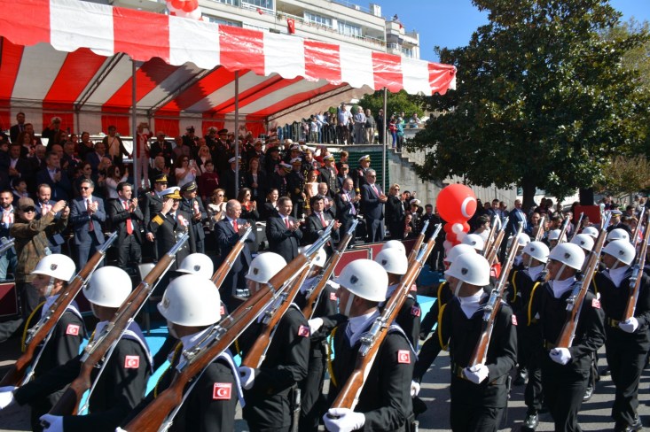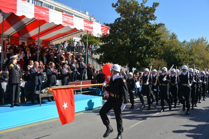 Atatürk posterleri ile başlayan Tören Geçişi gerçekleştirildi. Tören geçişine