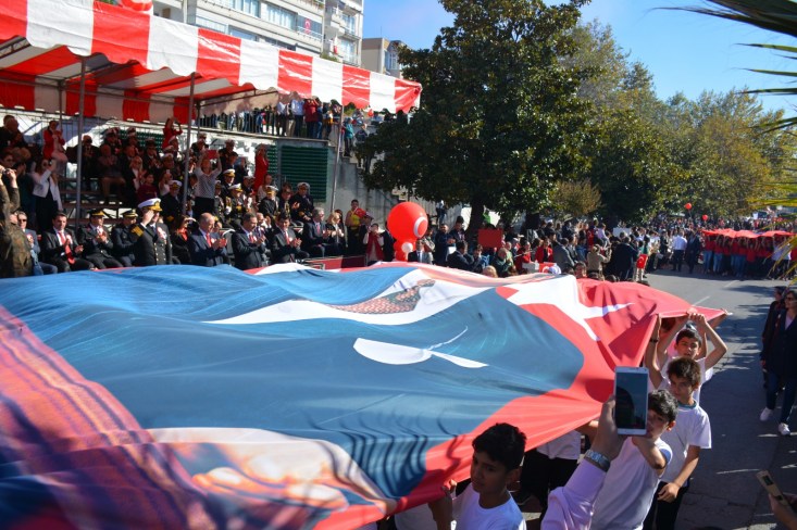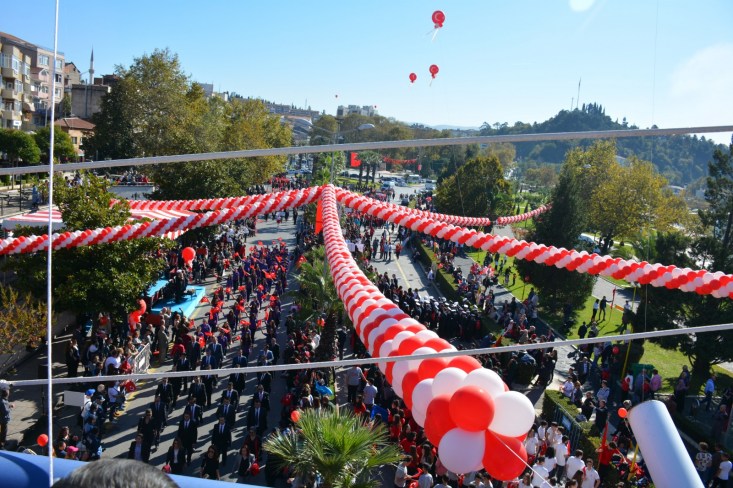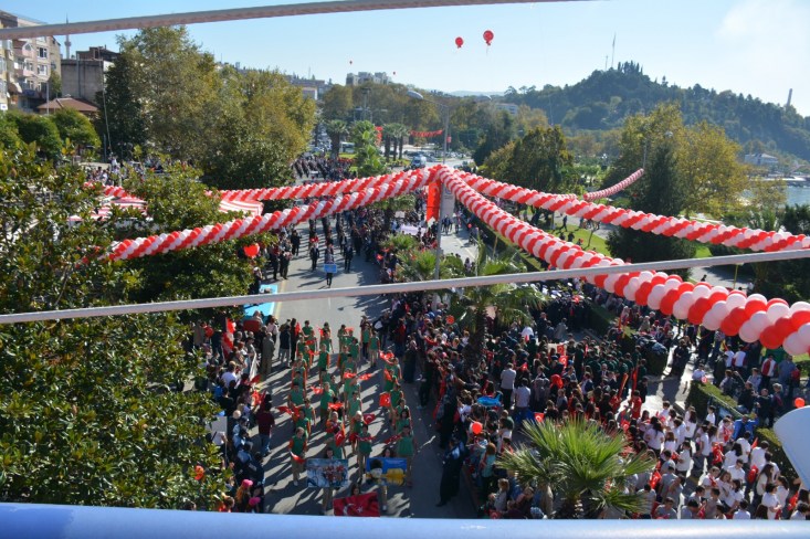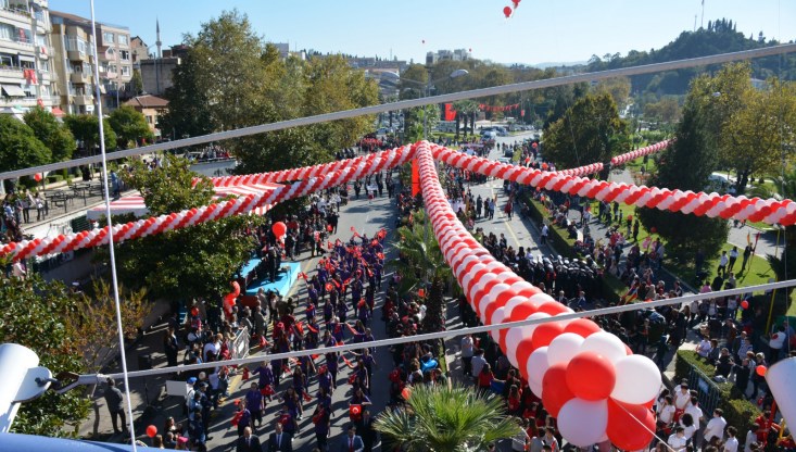 süslenen Sahil Bulvarında gerçekleştirildi. Tören öncesinde ilçedeki okulardan