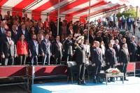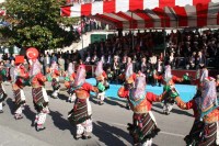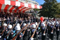 kuruluşlar ile askeri birliklerden oluşan gruplar katıldı. Vatandaşlar, tören