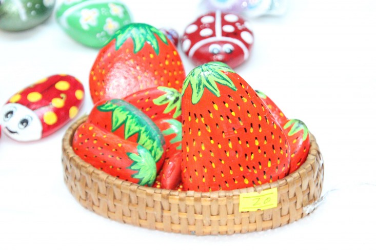 taşları boyayarak oluşturduğu eserler meraklı ve heyecanlı bakışların ilgi