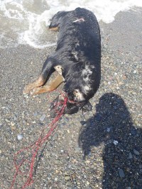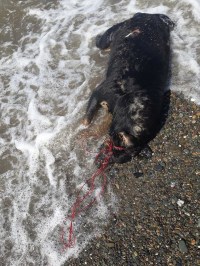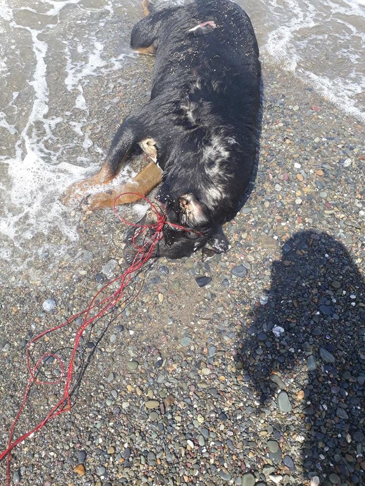 Zonguldak'ın Ereğli ilçesinde boğazına bağlanan iple boğulan ve daha sonrada denize atılan köpek yaşamını yitirdi. Fotoğrafları çeken vatandaşlar 'Bunu yapan insan olamaz' diyerek tepki gösterdiler.