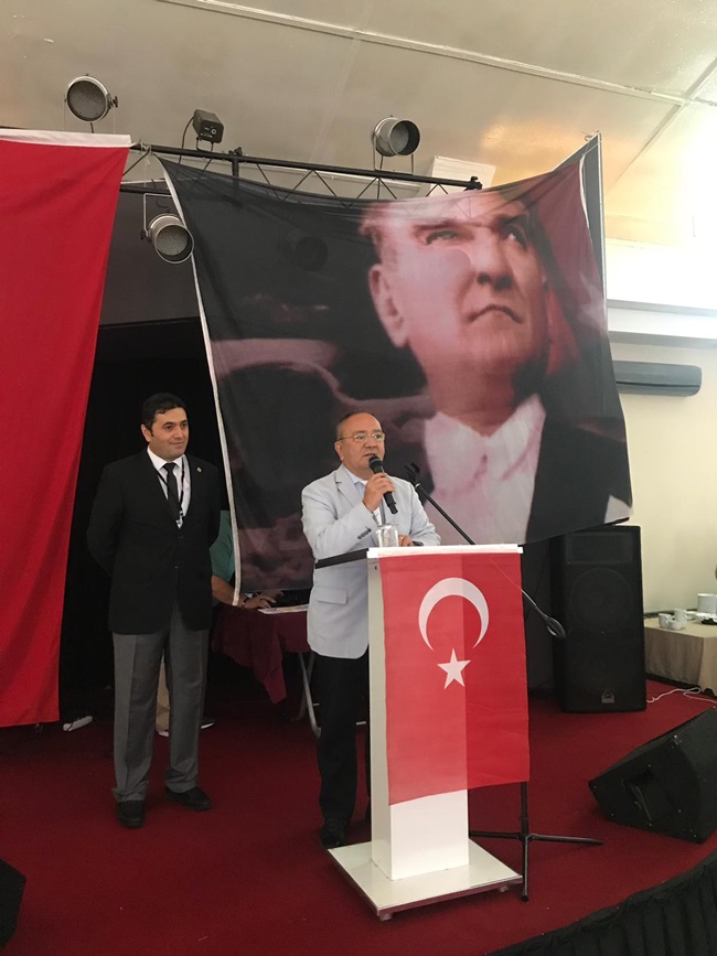Plaketimizi Atatürkçü Düşünce Derneği Genel Saymanımız Emin Semih Özkö takdim ederken, ben bu plaketi Atatürkçü Düşünce Derneği Karadeniz Ereğli Şubesi üyeleri ve Karadeniz Ereğli halkı adına teşekkür ederek alıyorum. Hep birlikte çok güzel çalışmalara imza atacağız” diyorum.