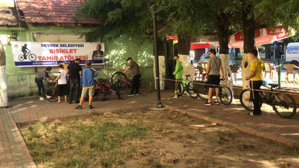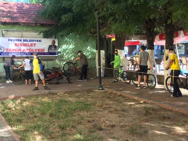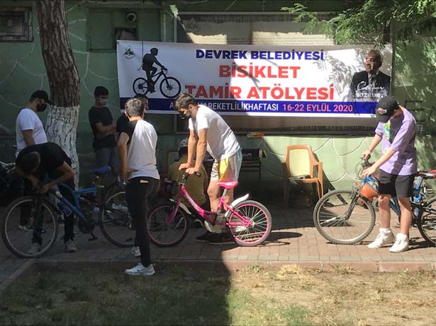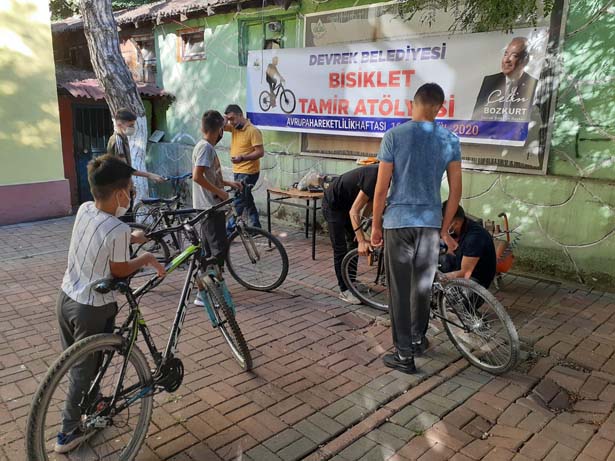 "Herkes İçin Sıfır Emisyonlu Hareketlilik" temasıyla çocuk, genç, yaşlı ayrımı gözetmeksizin Devrek'te yaşayan ve bisikleti bozuk olan vatandaşlar Devrek Belediyesi tarafından Eski Anaokulu bahçesinde düzenlenen "bisikletini tamir ettiriyoruz" etkinliğine yoğun ilgi gösterdi. Bugün sabah 09:30'da başlayan "bisikletini tamir ettiriyoruz" etkinliğine çocuk, genç yaşlı bozuk bisikletini getirerek bisiklet ustalarına tamir ettirdi.