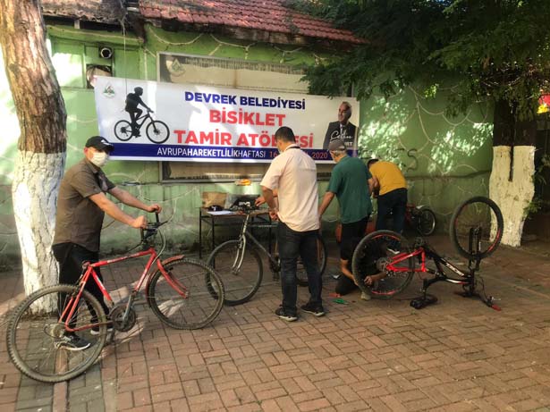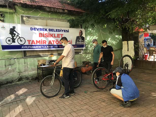 "Avrupa Hareketlilik Haftası"nın başlaması nedeniyle Devrek Belediyesi tarafından düzenlenen "bisikletini tamir ettiriyoruz" etkinliğini yoğun ilgi görüyor.