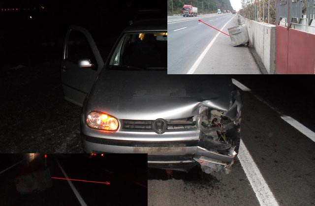 Gündüz yola yakın olduğu bir çok sürücü tarafından fark edilen Çöp konteyneri, Havanın kararması ile kazaya neden oldu.