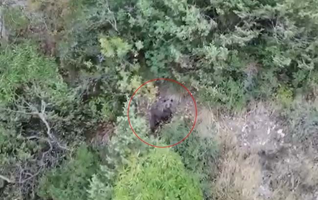 Zonguldak'ta kış uykusuna yatamayan ayı dron ile havadan görüntülendi.