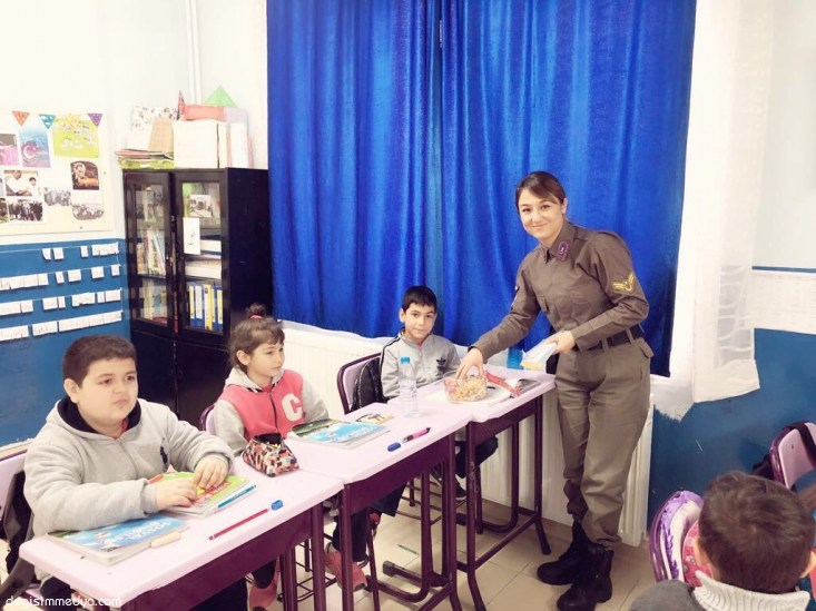 Zonguldak'ın Ereğli ilçesinde jandarma ekipleri, Terzi köyü ortaokulundaki öğrencilere trafik eğitimi ve sürücülere yönelik kış lastiği uygulaması yaptı.