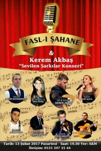 Grup Fasl-ı Şahane Koro Şefi Kerem Akbaş, 13 Şubat'ta Atatürk Kültür Merkezi Sinema Salonu'nda alacakları sahnede, değişik müzik tarzlarının ve Türk Müziğinin en sevilen , güncel eserlerine yer vereceklerini söyledi.