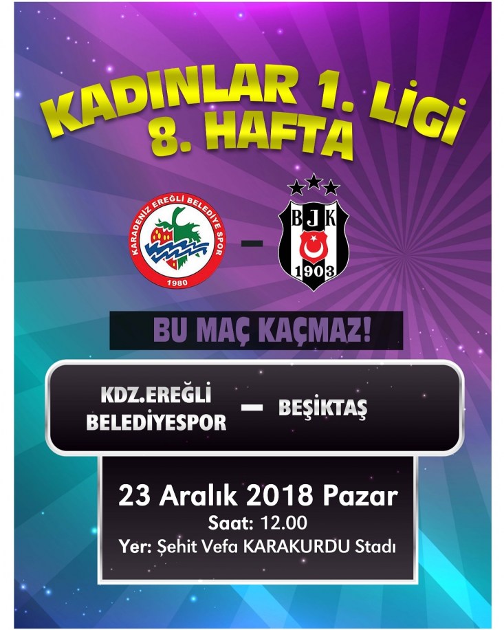 karşılaşmasında Kdz. Ereğli Belediyespor Beşiktaş'ı konuk edecek. Sezonun 8.
