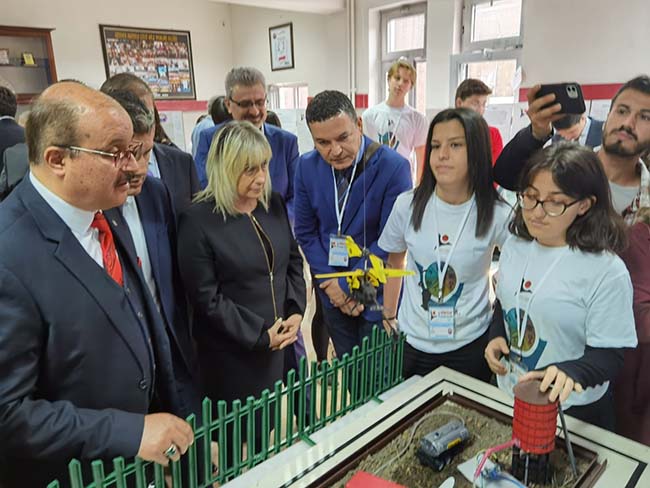 Fuarda Erdemir Anadolu Lisesi öğrencileri tarafından “Yeni Nesil Tarımda Yapay Zeka” adlı proje yapay zeka tarımda geleceğe yönelik kararlar veren bir sistem geliştirdi. İçinde insansız hava aracı, otomatik sulama, uzaktan kontrollü otomasyon traktörü yer aldığı proje protokol tarafında beğeni aldı.