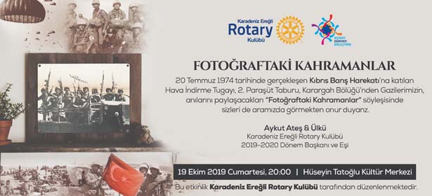 Alınan bilgiye göre, Karadeniz Ereğli Rotary Kulübü 2019-2020 Dönem Başkanlığının organizasyonuyla 20 Temmuz 1974 tarihinde gerçekleşen Kıbrıs Barış Harekatı’na katılan, Hava İndirme Tugayı, 2.Paraşüt Taburu, Karargah Bölüğü’nden Gazilerimiz, anılarını bizlerle paylaşmak üzere 45 yıl sonra farklı şehirlerden gelerek Ereğli’de buluşacaklar.