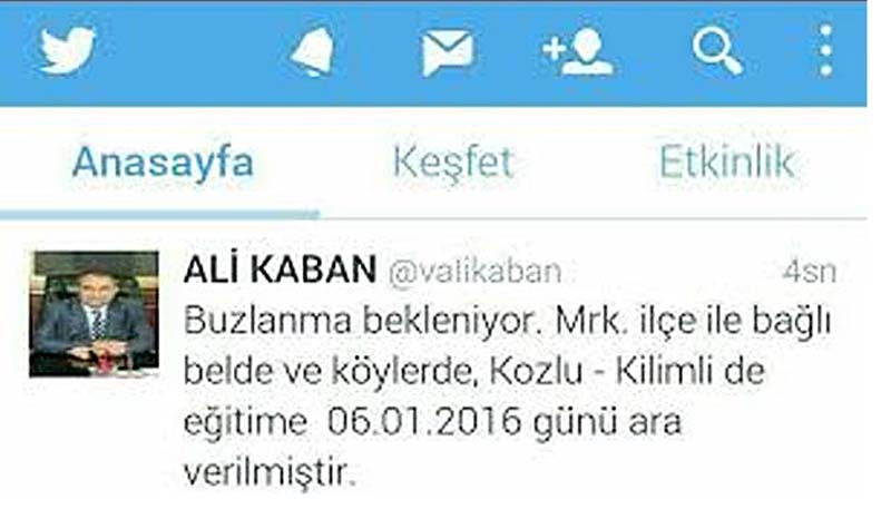 Zonguldak'ta altı gündür tatil yapan öğrencilerin gözü hala Zonguldak Valisi Ali Kaban'ın Twitter hesabında.