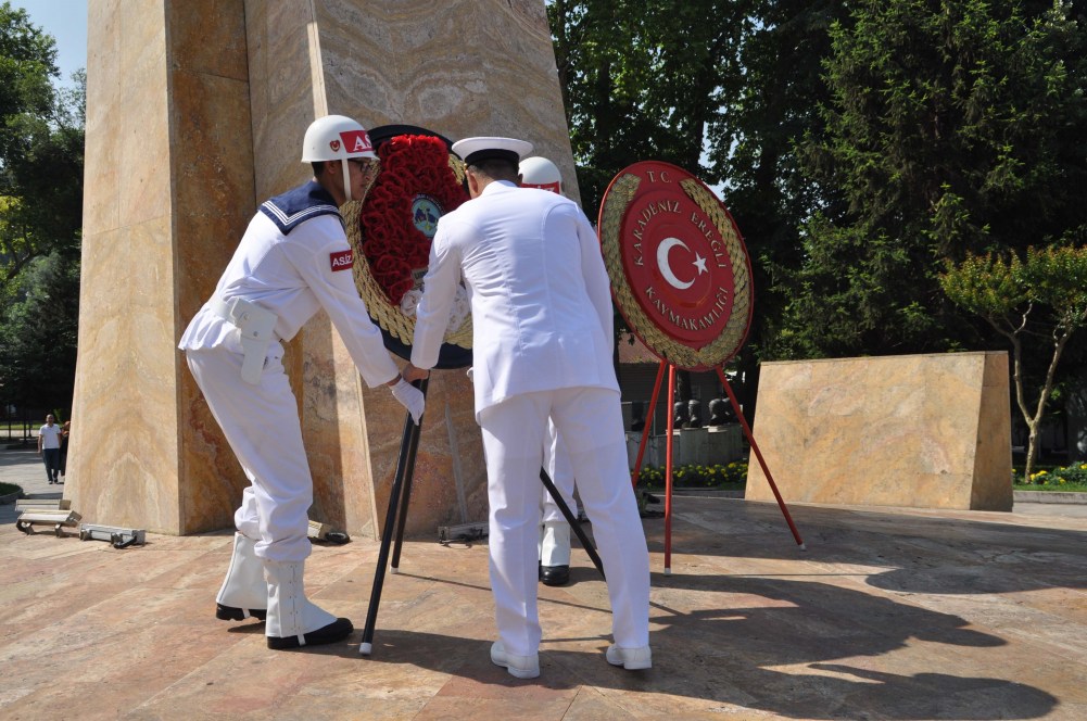 Törenin ardından Belediye Limanı’ndan denize çelenk bırakıldı. Törene Ereğli Kaymakamı Mehmet Yapıcı, AK Parti Zonguldak Milletvekili Saffet Bozkurt, Karadeniz Bölge Komutanı Tuğamiral Niyazi Uğur, Kdz.Ereğli Belediye Başkanı Halil Posbıyık, Türk Silahlı Kuvvetler Gücü unsurları, bazı STK’lar, bazı daire amirleri, bazı şehit yakınları ve gaziler katıldı.