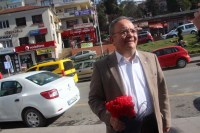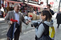 karanfilleri sokakta gördüğü ve işyerlerinde çalışan bayanlara