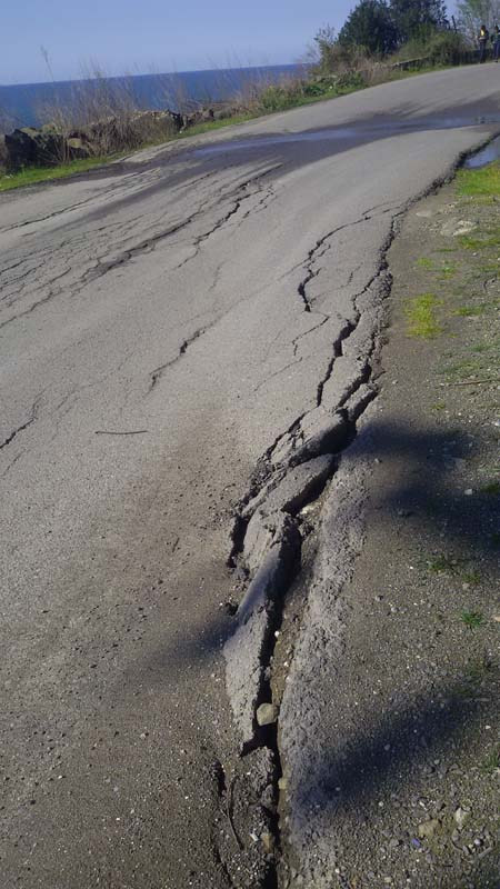 O bölge yoldaki yarılmalar ve çukurları ben de gördüm. Yol adeta halı gibi bükülmüş ve denize doğru kaymış. Böyle giderse ya yol denize uçacak yada dikkazsiz bir araç..