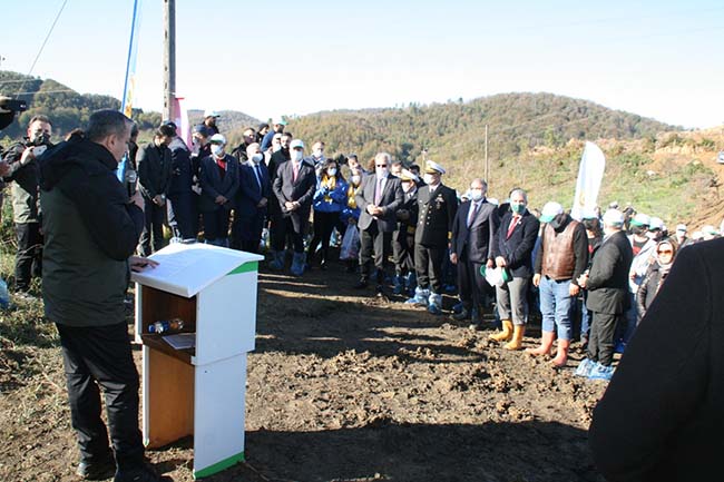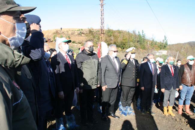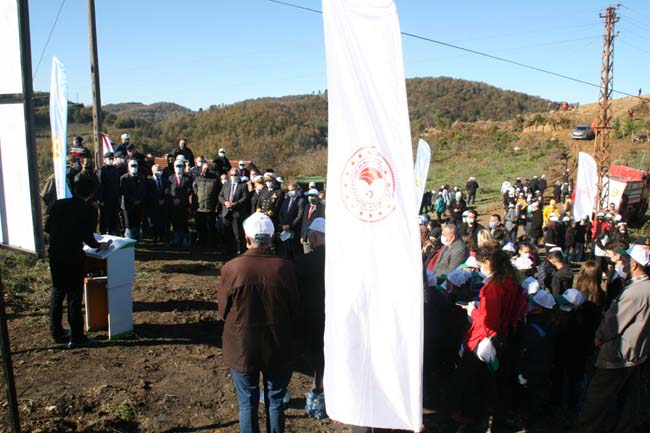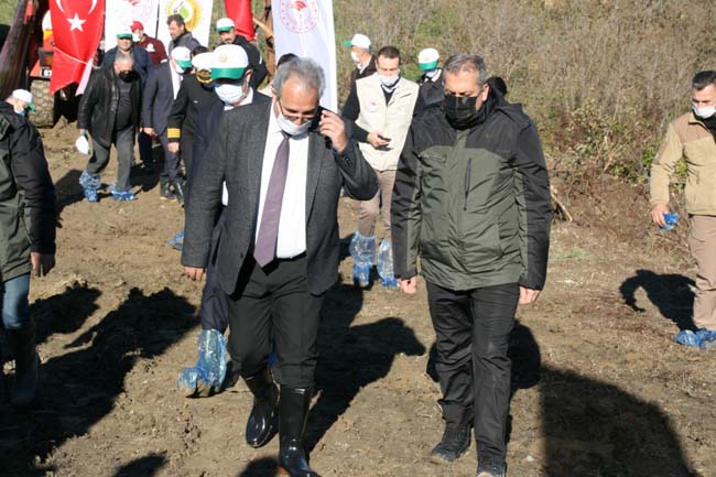 Ardından tören kapsamında protokol ve katılımcılar önceden hazırlanan bölgede ağaç dikimi gerçekleştirdi.