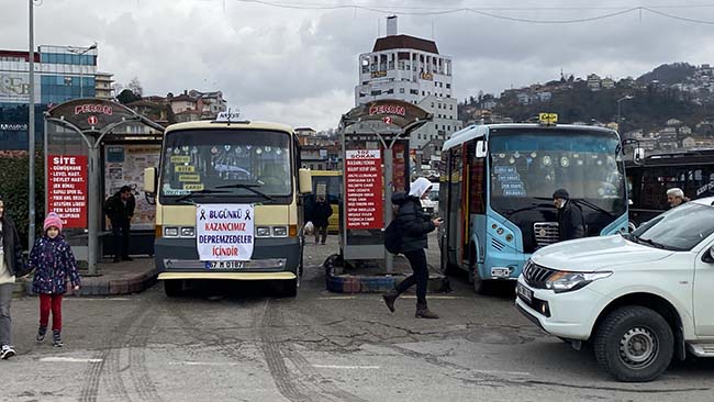 Zonguldak’ta şehir merkezinde bulunan dolmuşçular tüm dünyanın yaşadığı en büyük depreme kayıtsız kalmadı.