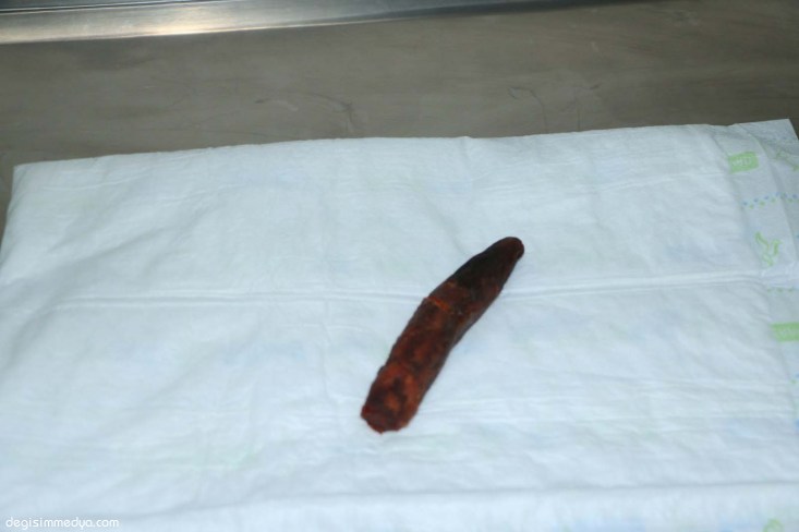 vajinasında yaklaşık 30 santim uzunluğunda bir parça olduğunu tespit edilmesi