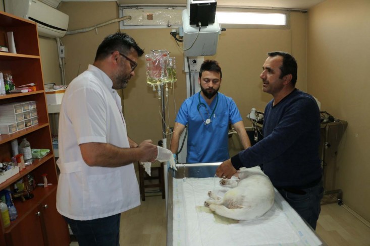 Pamuk isimli köpeğe operasyonu gerçekleştiren veteriner