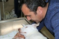 Veteriner kliniğinde tedavisi tamamlanan Pamuk, sahipleri