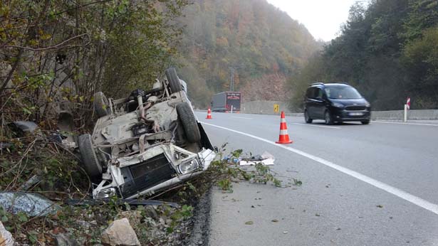 Zonguldak-Ankara karayolu mevkiinde direksiyon hakimiyetini kaybeden araç takla attı. Kazada, araç sürücüsü takla atan araçtan burnu bile kanamadan çıktı.
